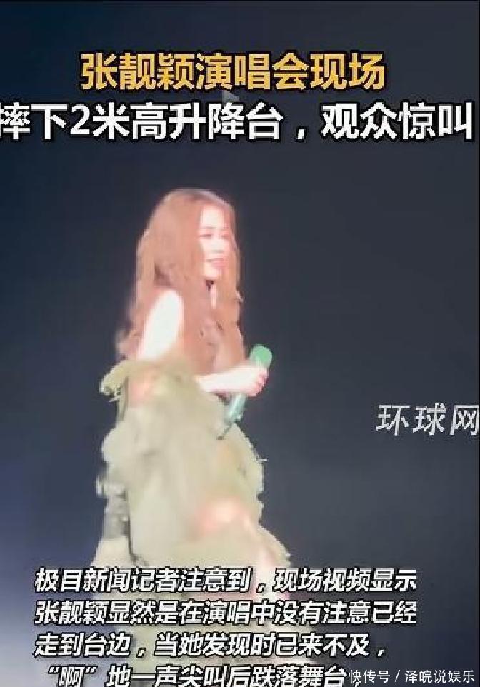昨晚西安那场,张靓颖在升降台边缘一脚踩空,被拍到从约两米高处跌下。台下一片惊呼,她自己先是尖叫,随即消失在台沿。