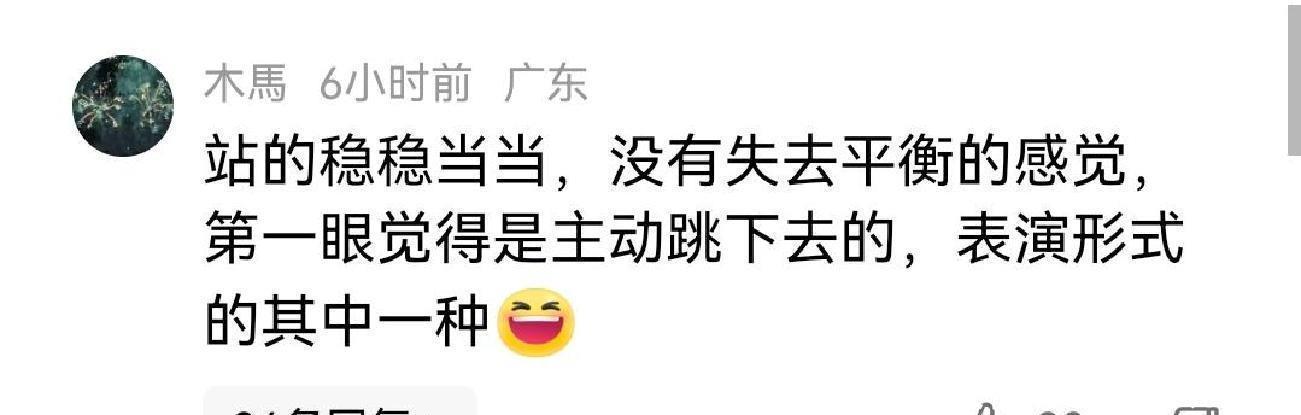 10月11日有网友把视频发上社交平台,评论区炸了。有人说看着像故意跳,是一种表演形式。